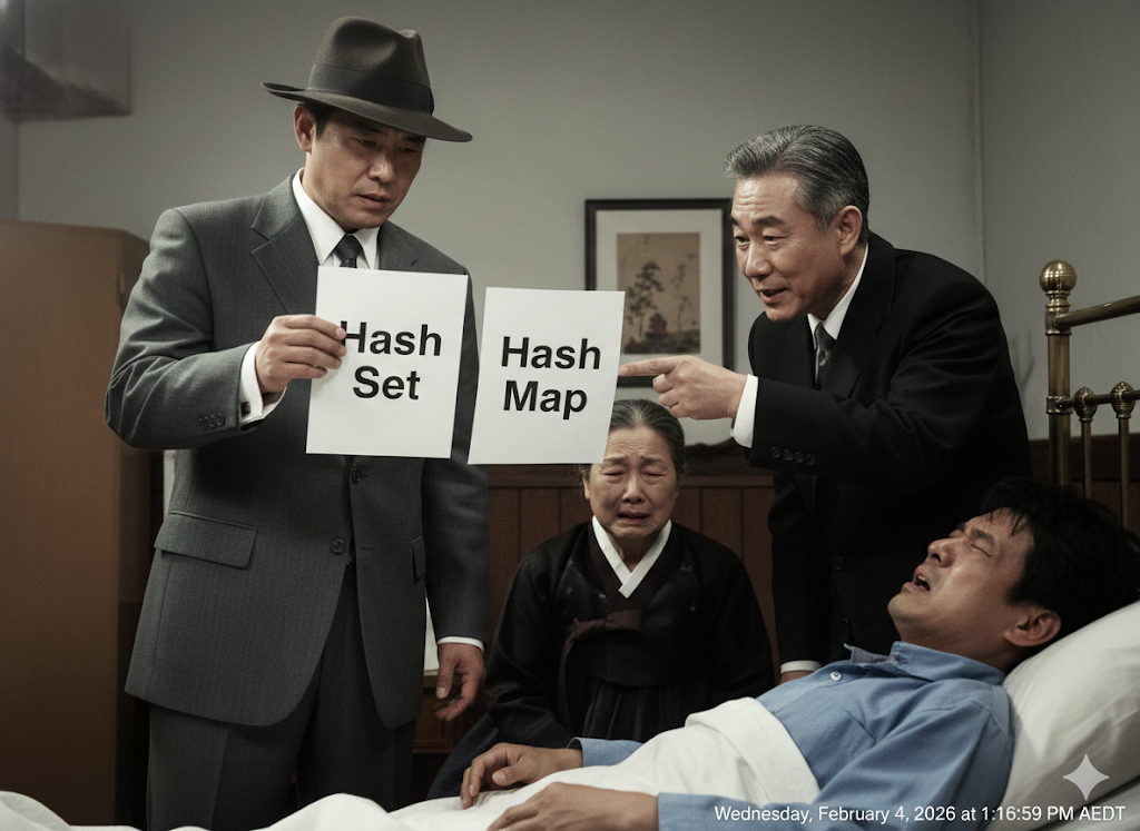 김두한: (코드를 보며 비웃듯) 역시 그랬군. 심영이, 자네는 겉으로는 **HashSet**이라고 떠들고 다녔지만... 속은 HashMap으로 되어 있어!